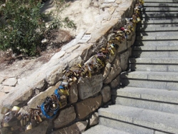 It was not revealed how much the metal was worth or what has or will be done with the money acquired - assuming that the story is true. There has been no handrail along the stairs since August ... causing anger among many. As one local said "The rail was removed on the understanding that a replacement would be installed, but to date nothing". If one does get put up its going to be rather difficult to police and I am sure that before long new padlocks will start appearing. Perhaps we can come up with an alternative site and pass that suggestion onto the Town Hall.... so any guesses as to how much it would be worth?